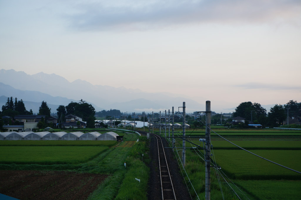 日がのぼるにつれて、徐々に稜線が見えてくる山々。