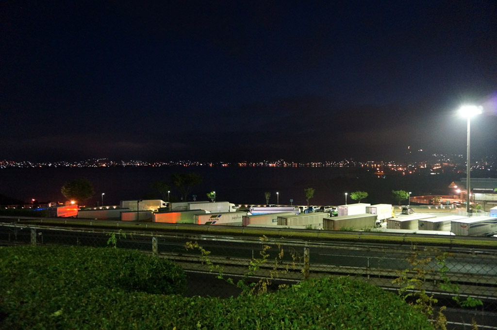 諏訪湖SAにて。灯りで湖の位置が分かる。STP200回想い出の地です。