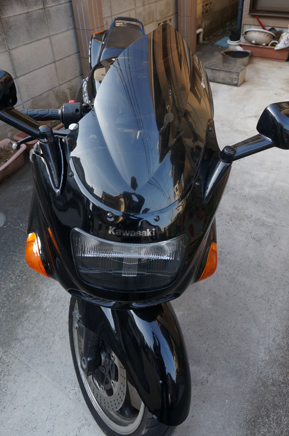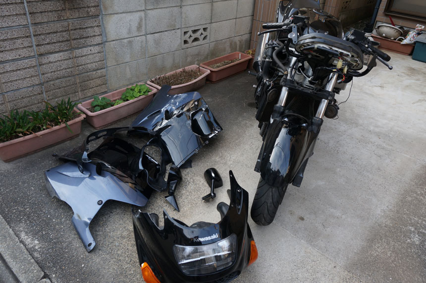 スクリーンが割れてるし、ミラー自体はさておき、フロントのカウルが…