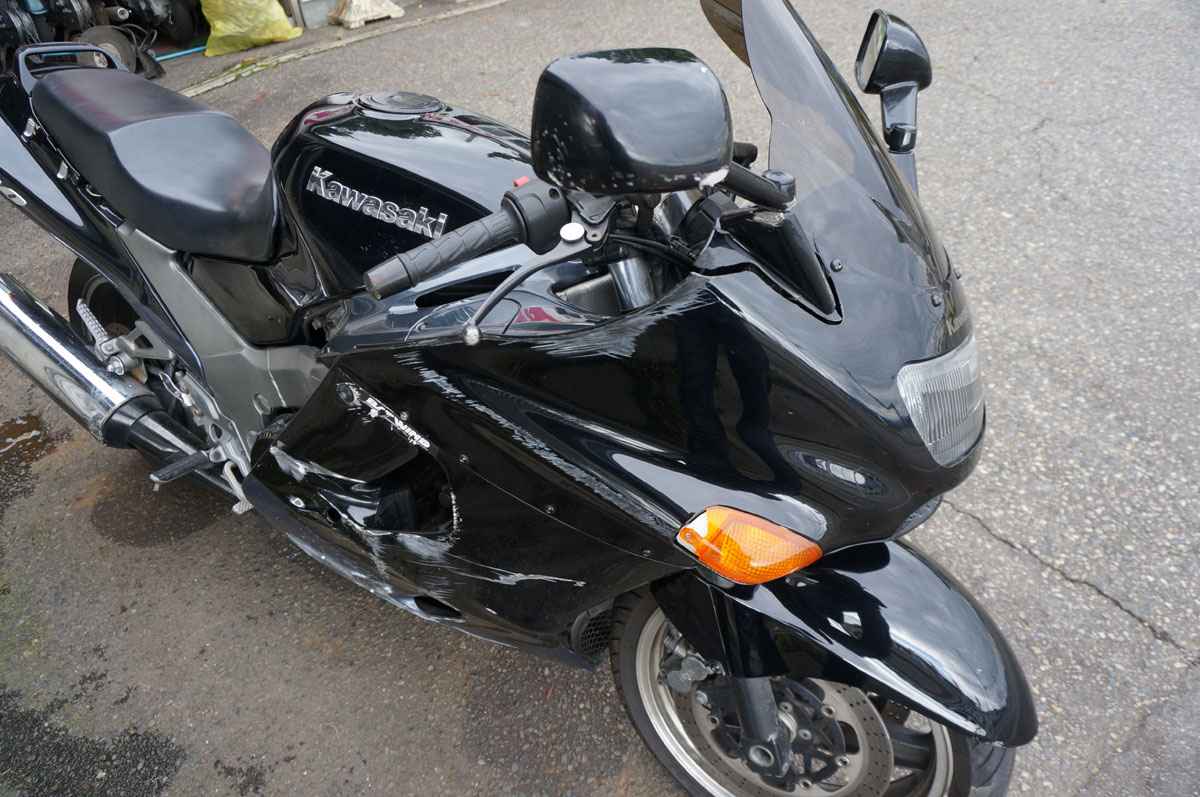 スクリーンとカウル、ミラーのステー(力業で曲げて戻してる)、ウィンカーレンズは