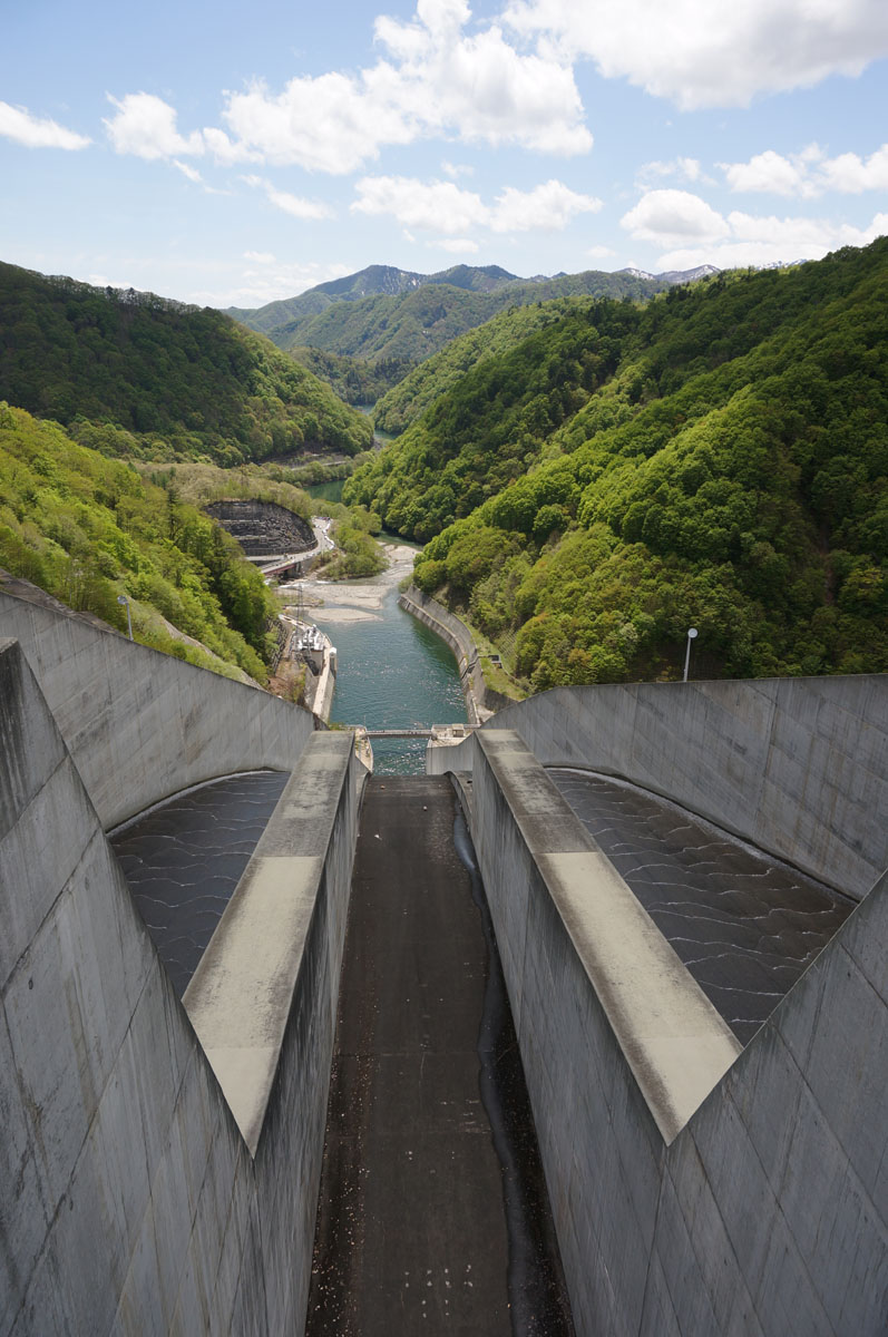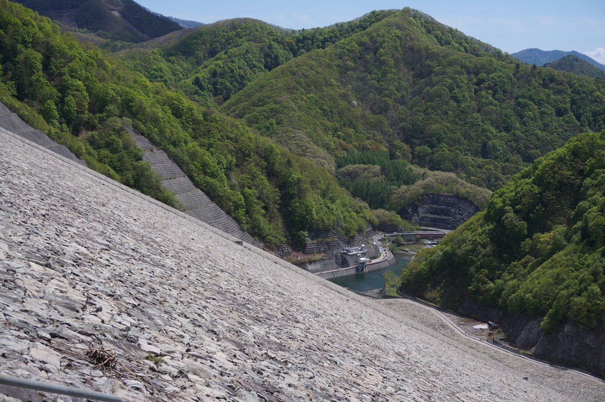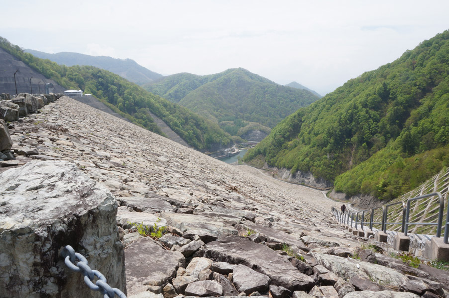 日本でも有数の堤体。本当に綺麗なロックフィルダムだと思う。