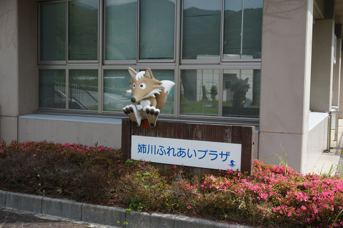 姉川ダムのパンフレットによると、マスコット「コンコンキツネ」というらしい。