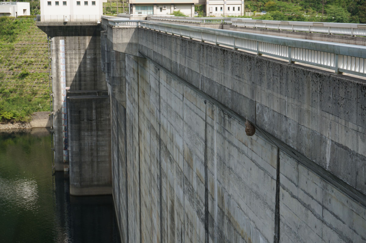 堤体の上流側に蜂の巣が。スズメバチだろうか。もう空き家のようだが。