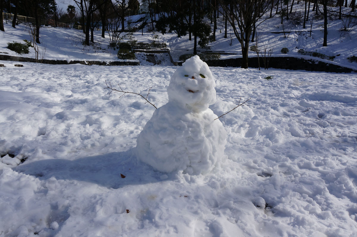 微妙なクオリティの雪だるま。顔や手もつけたのは評価する。