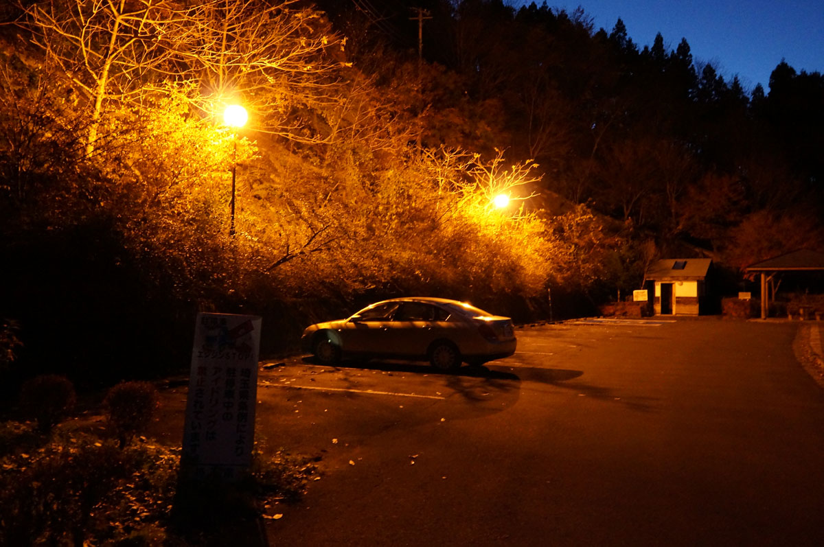 とりあえず、ループ橋から見ることに決めて、橋の途中にある休憩所にバイクを置く。