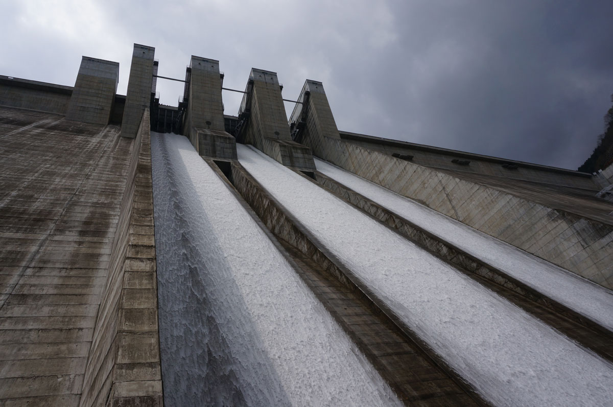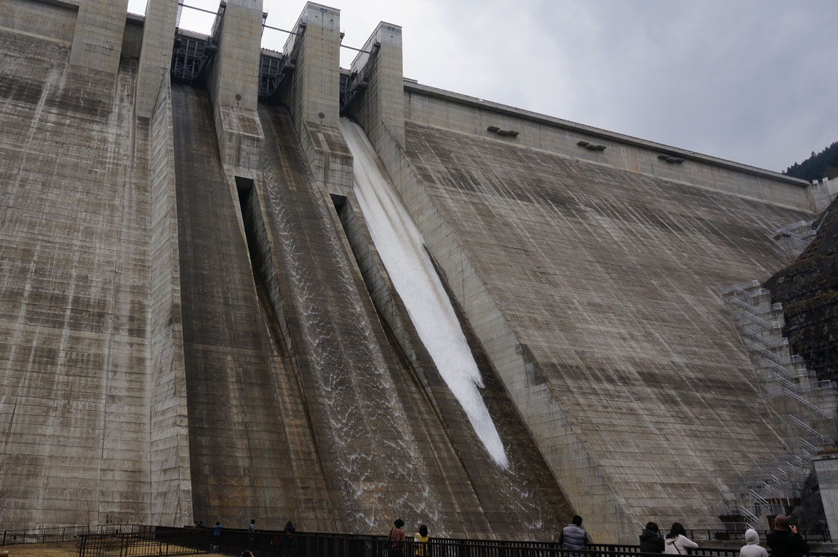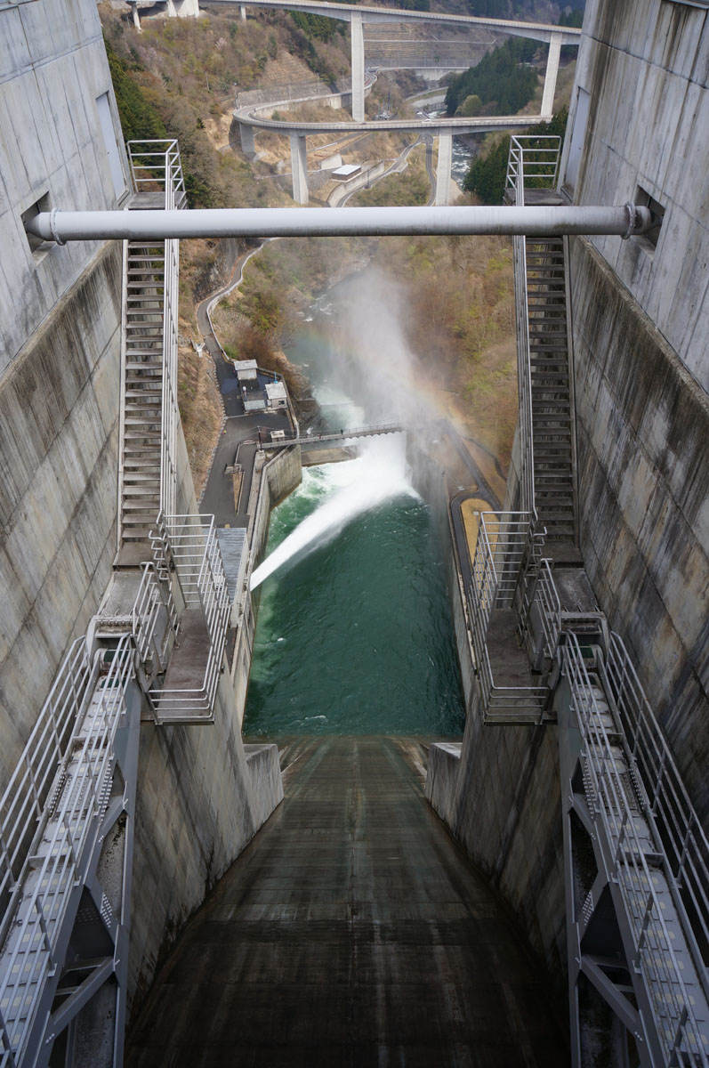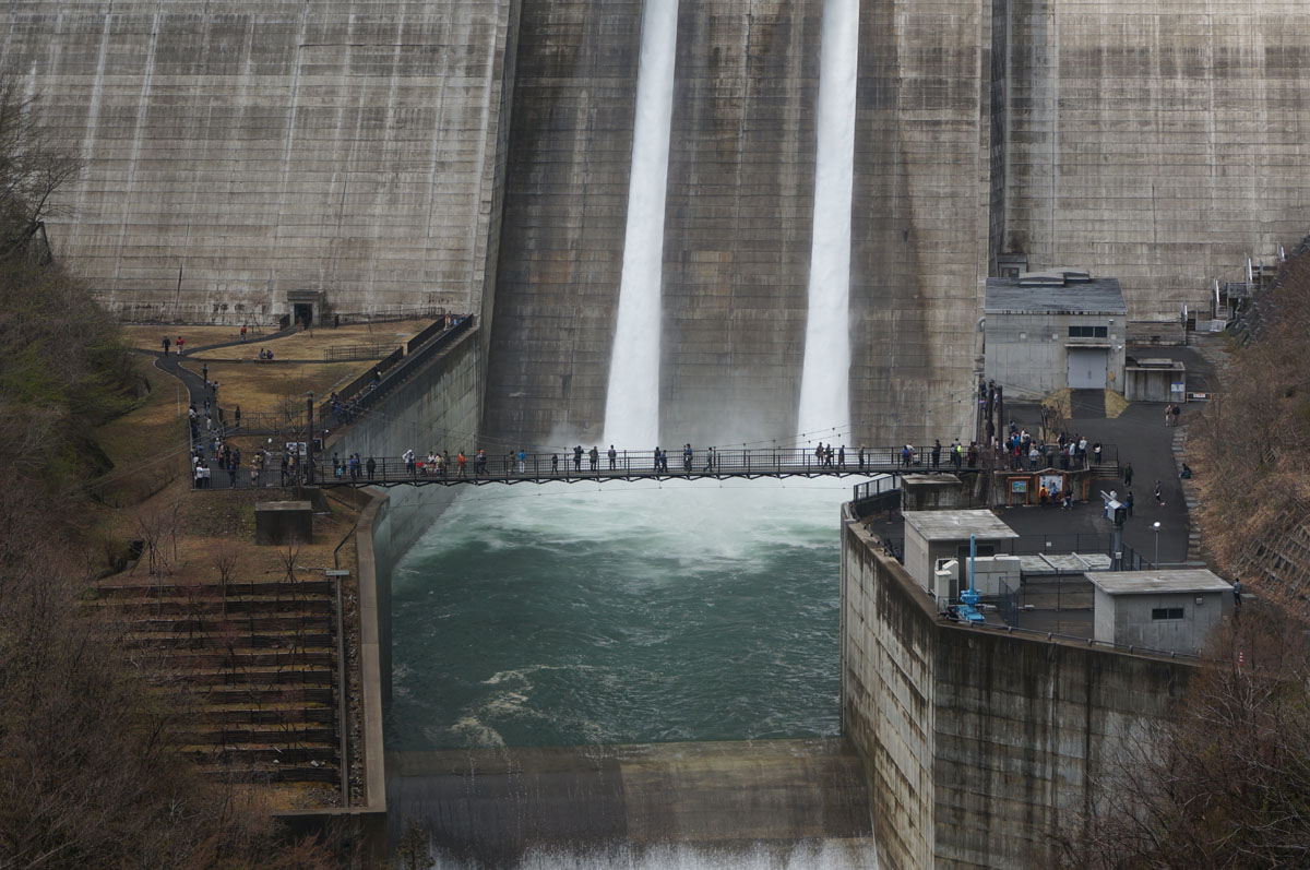 しかも、ダム完成後の試験で一度使ったきりの非常用洪水吐からも放流するってんで飛んで来た訳でアリマス。