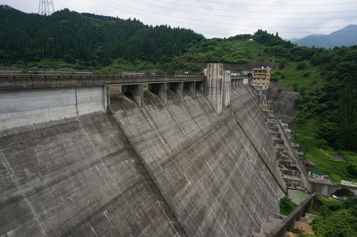そこから見た堤体。贅沢言うなら、もう少し高いところから見たい…