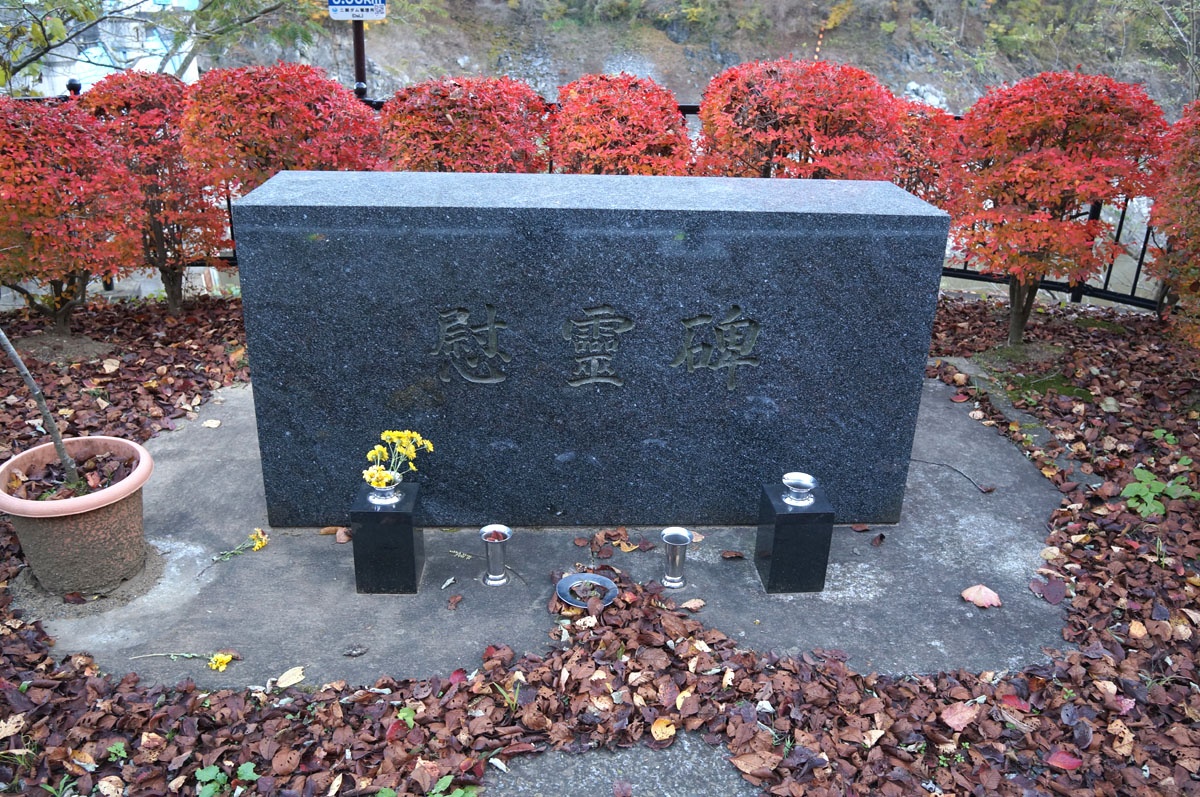 T字路の逆のとこには慰霊碑。