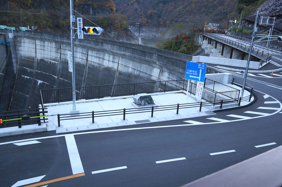 二瀬ダムの石碑がポツンと設置されています。