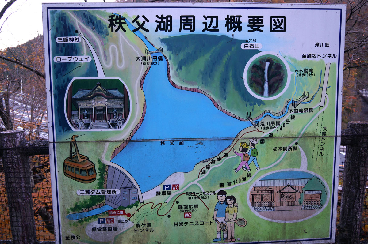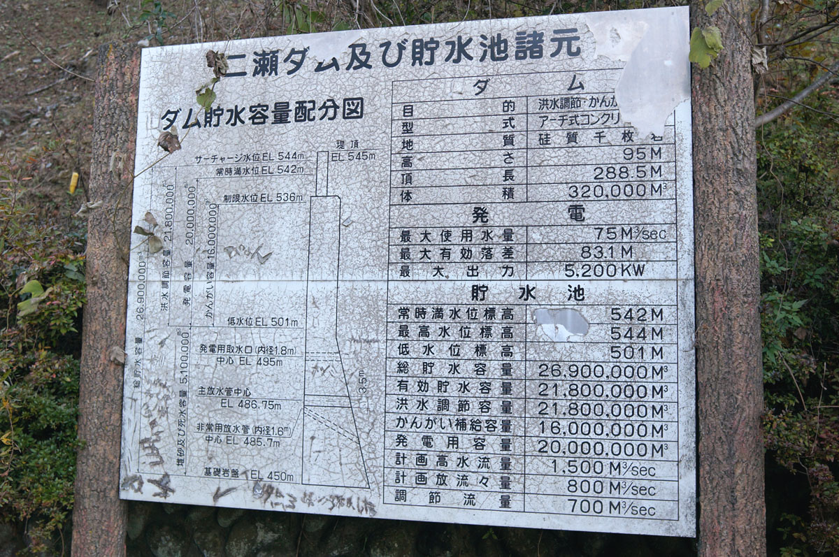 途中にあったこの案内板は古いまま。ダム管理所の場所も駐車場側に変わってますし。