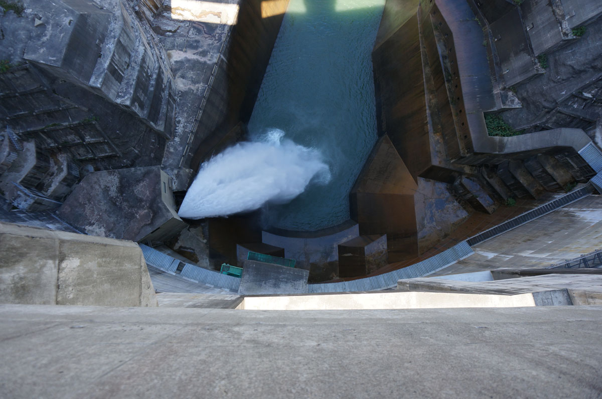 覗きこむとこんな感じ。堤高116m。アーチなので、真下に落ちる感じです。