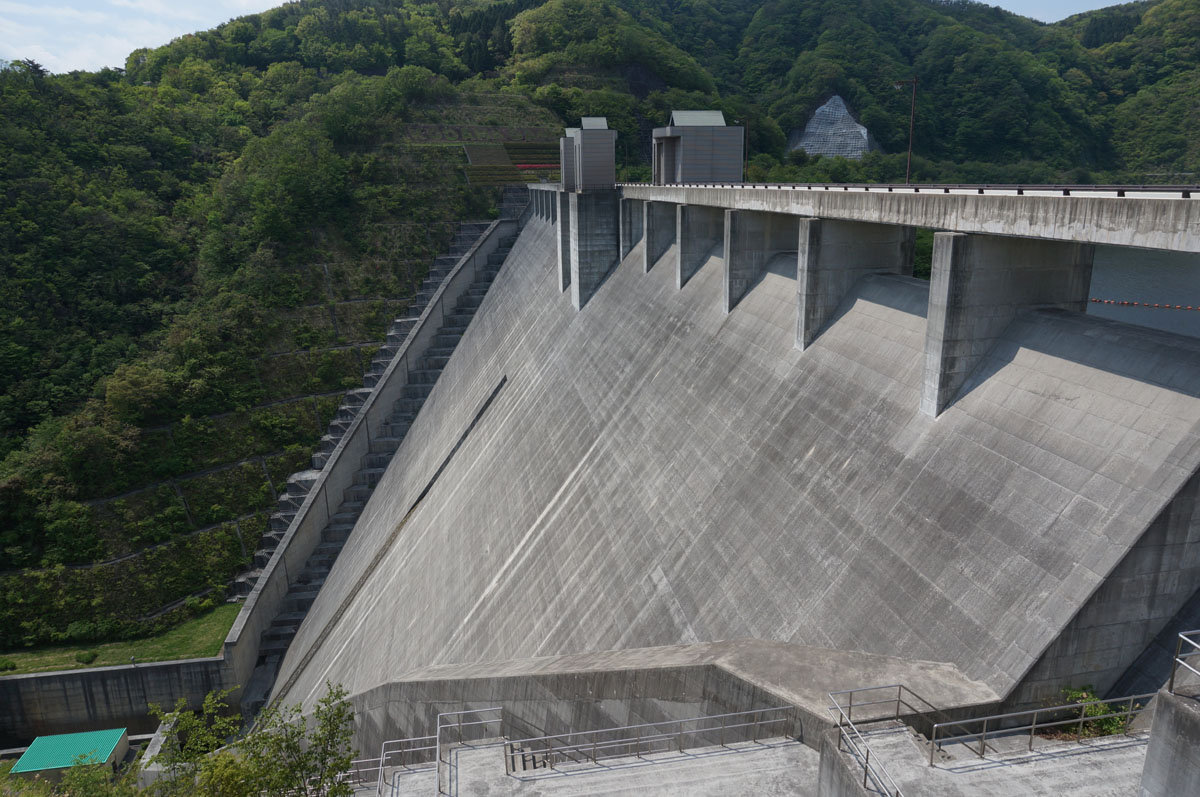 100mクラスの巨大な堤体、立派です。無難な造り(ぉぃ