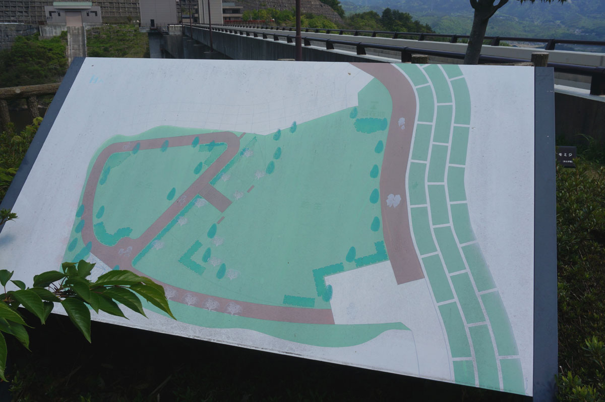 今更気付いたのは、左岸ののり面の上。どうやら展望スペースがある。
