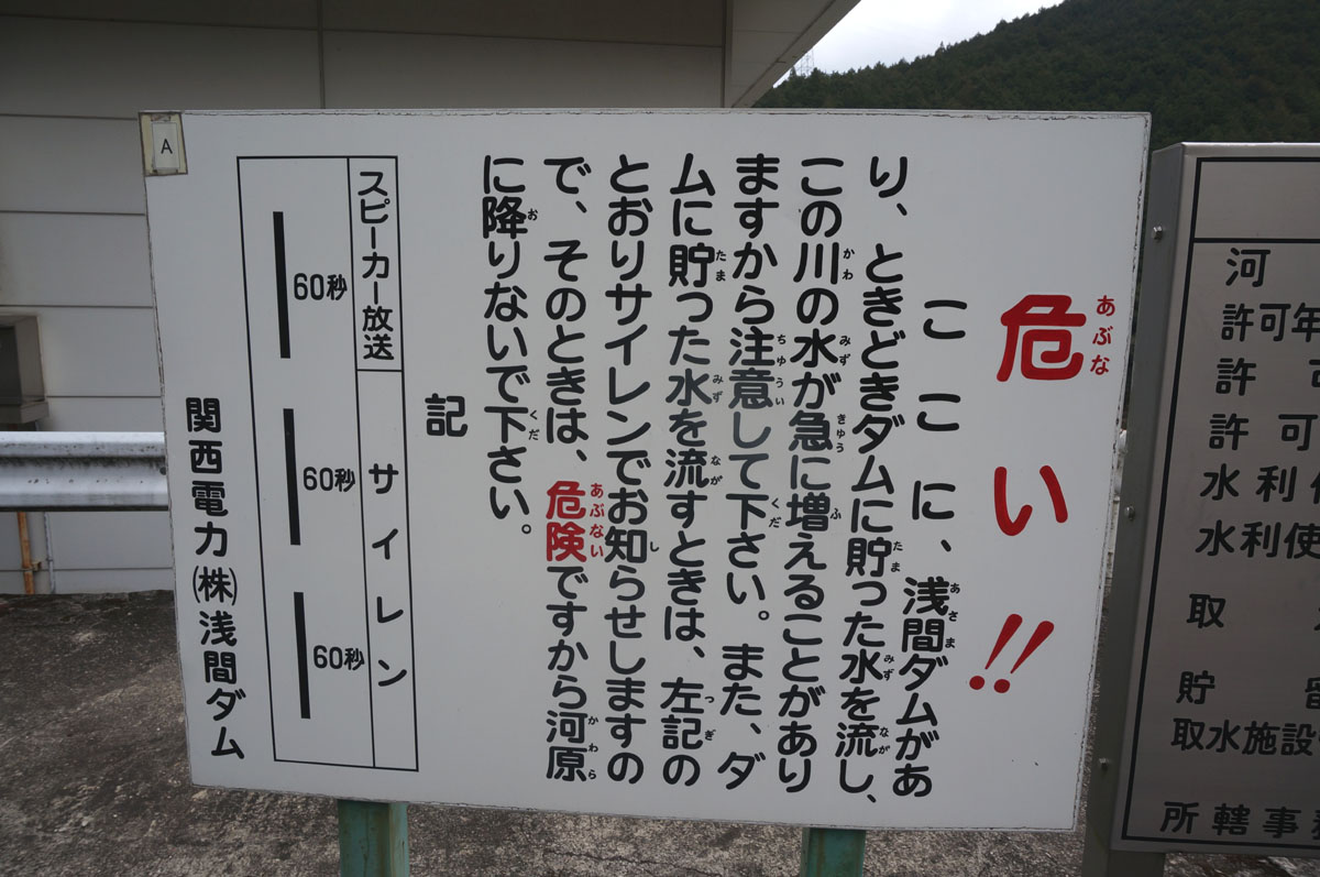 越方(浅間)ダム、と書いてある。ここも関西電力の発電所用取水堰堤だ。