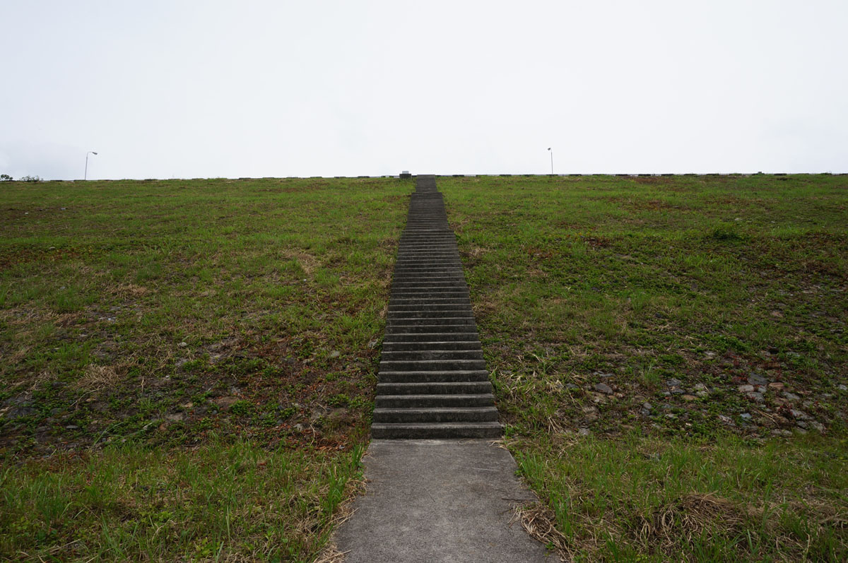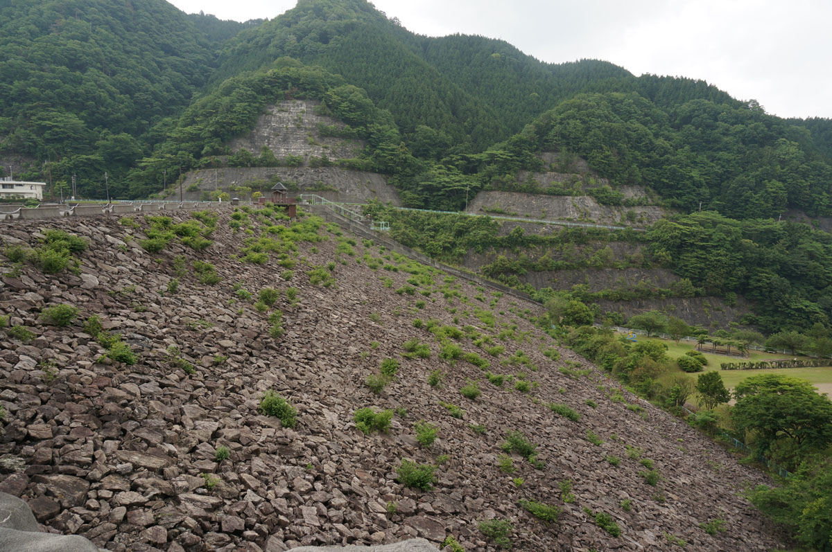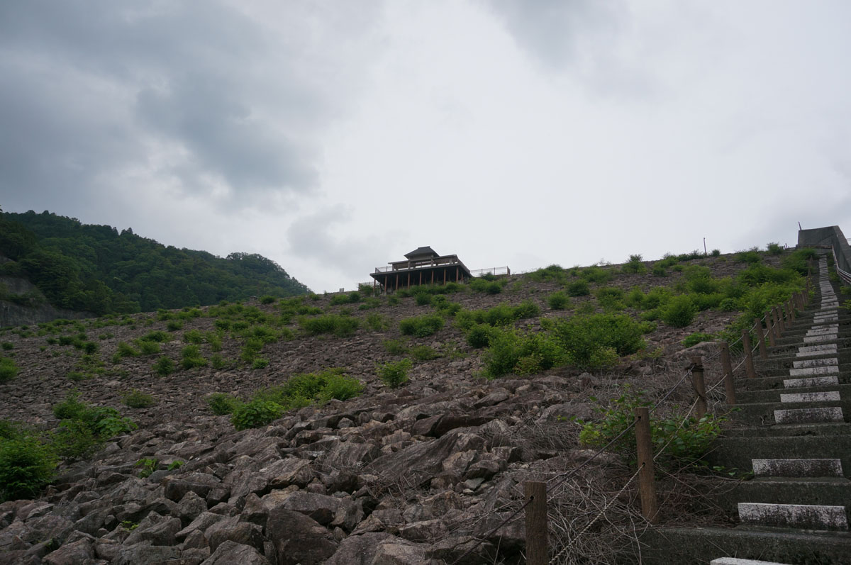 ロックフィルの堤体にある階段は段差がランダムってのは「あるある」ではあります。