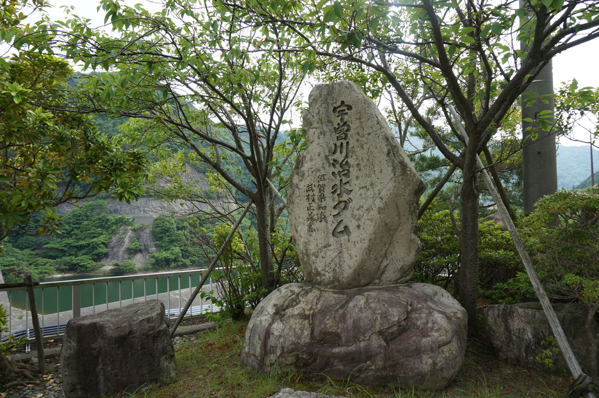 宇曽川治水ダムと刻まれた石碑がお出迎え。