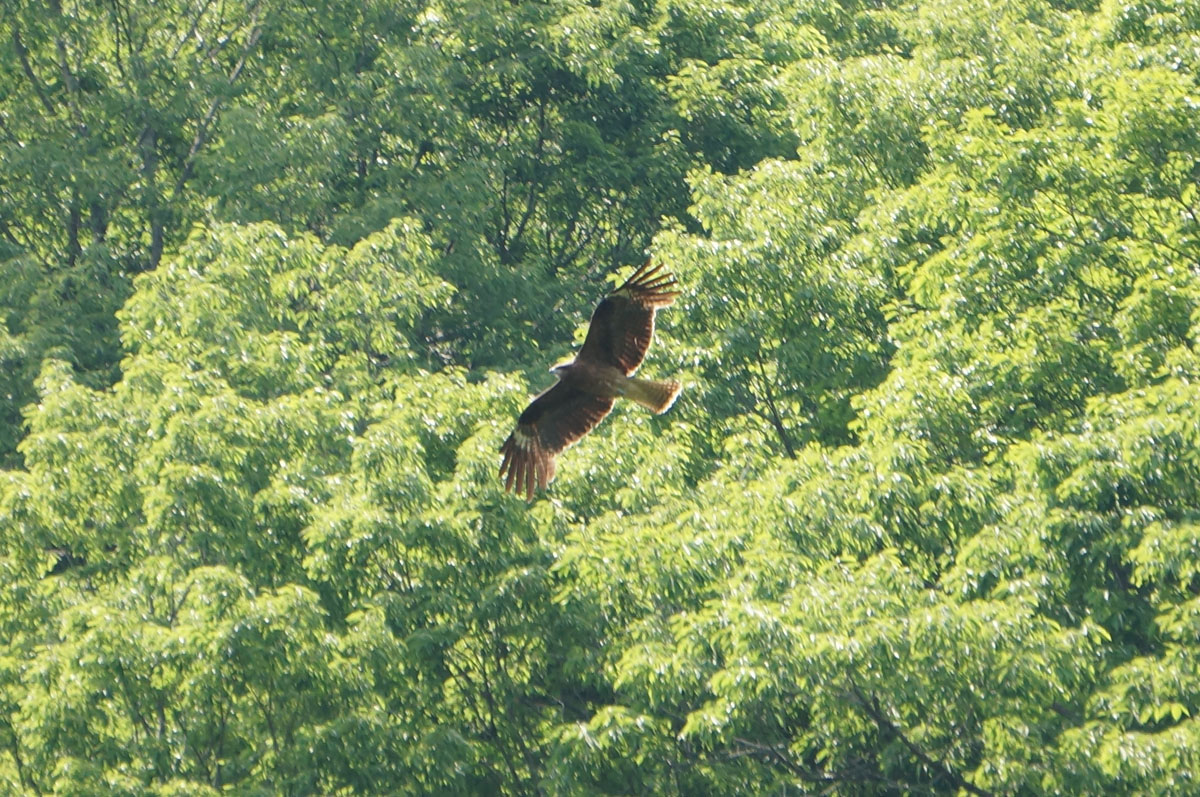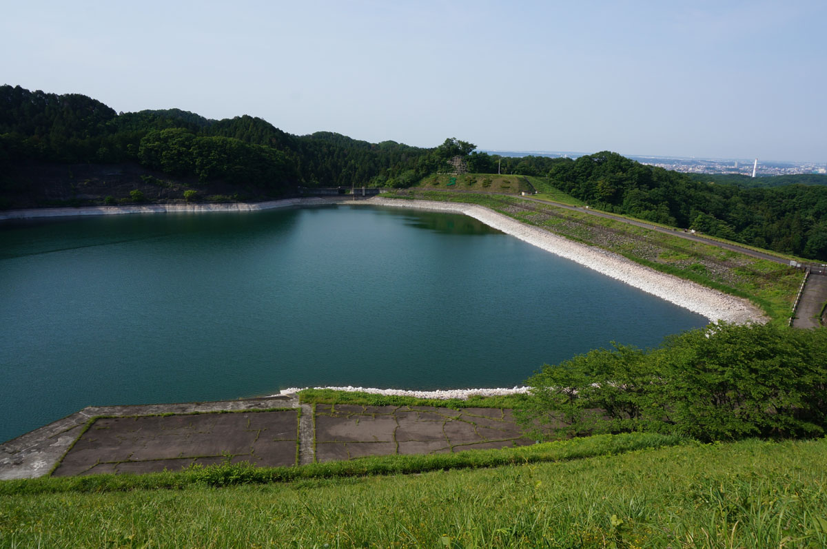 洪水吐は小山を挟んであっちに。