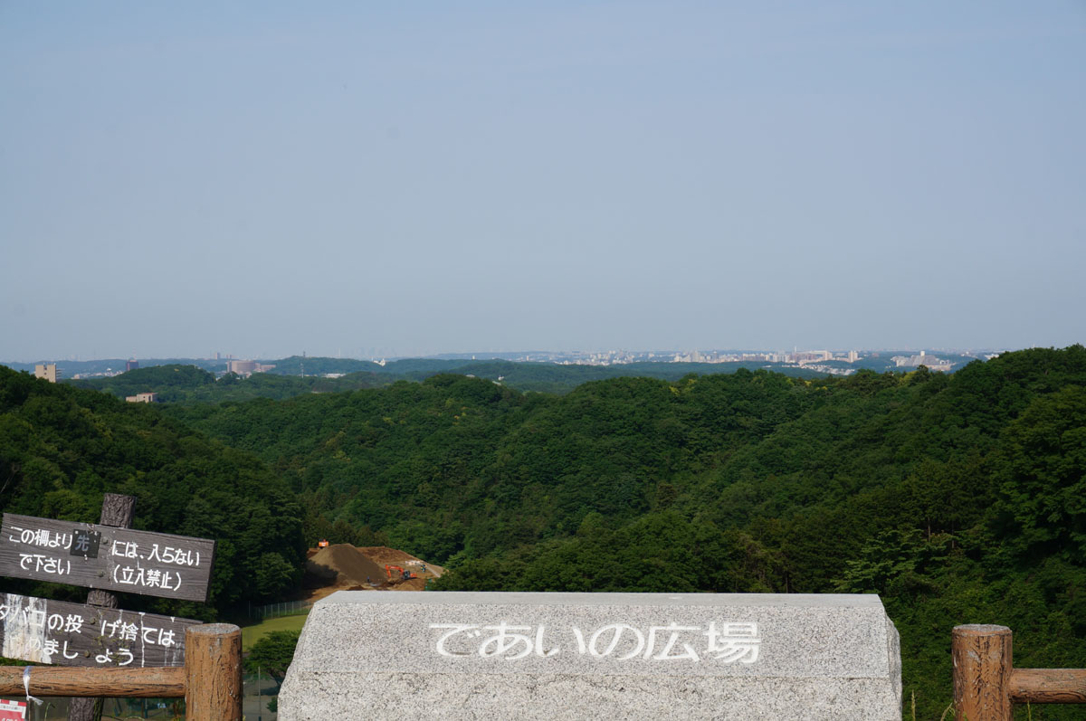 天端からの景色。相模原の町並みはもちろん、遠く都心の高層ビル群も見える。