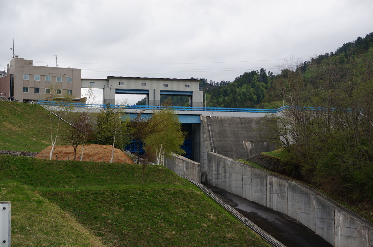 管理所で一応ダムカードを貰う。管理所の駐車場から見た堤体。