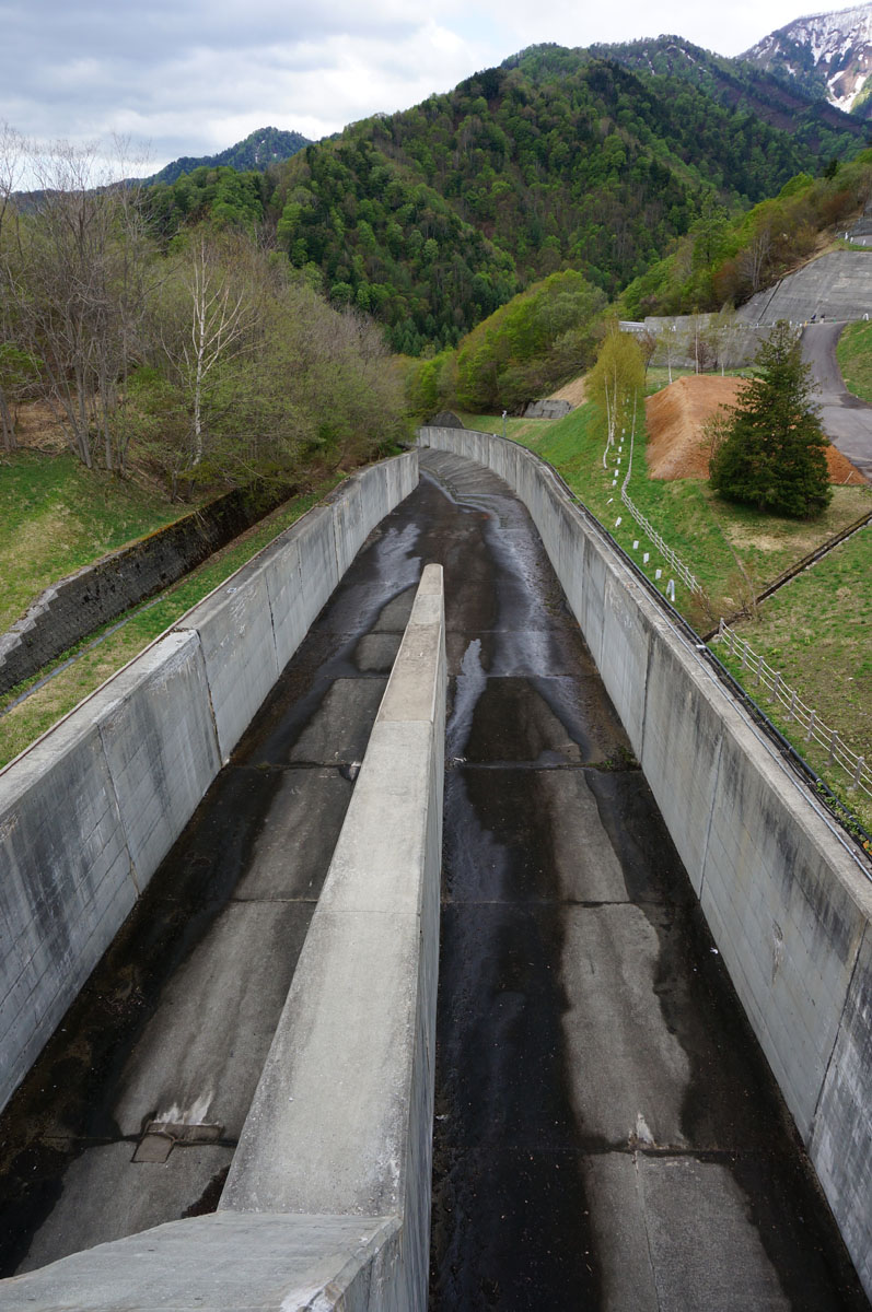 奈良俣ダムを意識して、洪水吐(福神漬け)も左岸側。