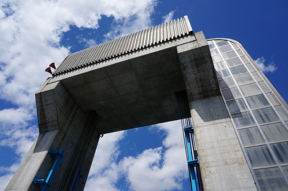 天端を中程まで歩いてきた。ゲートやその周辺。