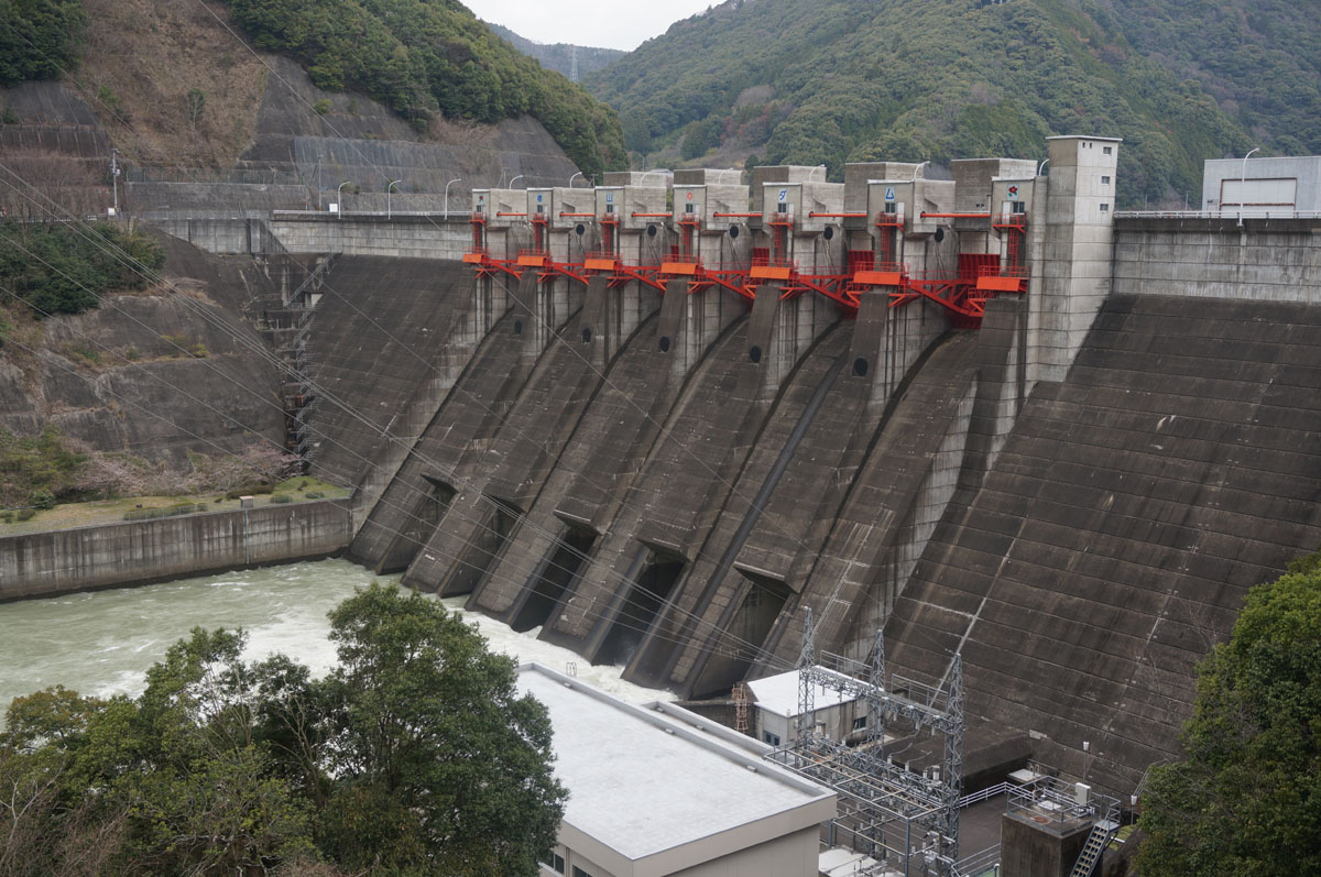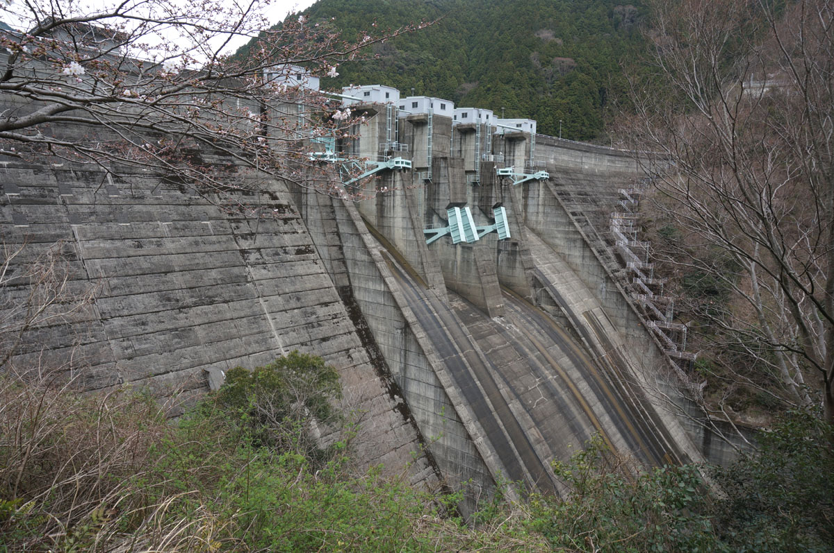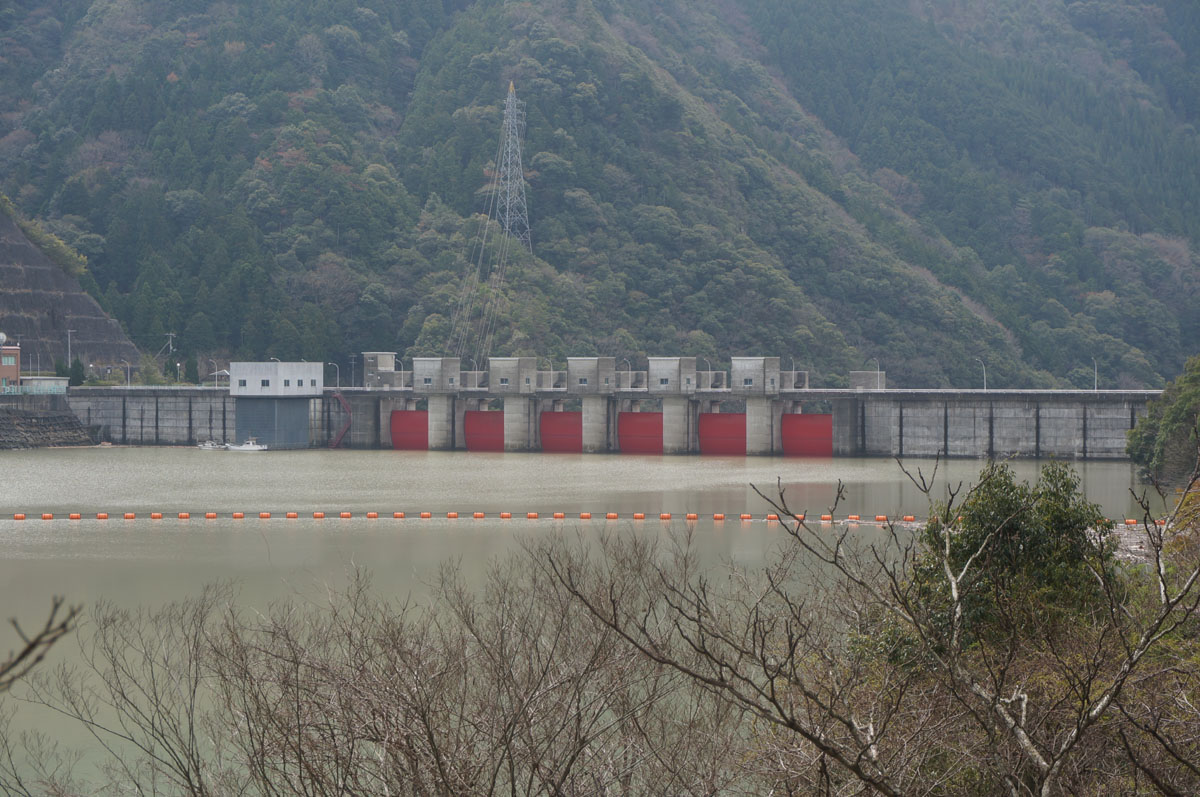 上からは(若干、木が邪魔だが)ダム湖と堤体を一望できる。