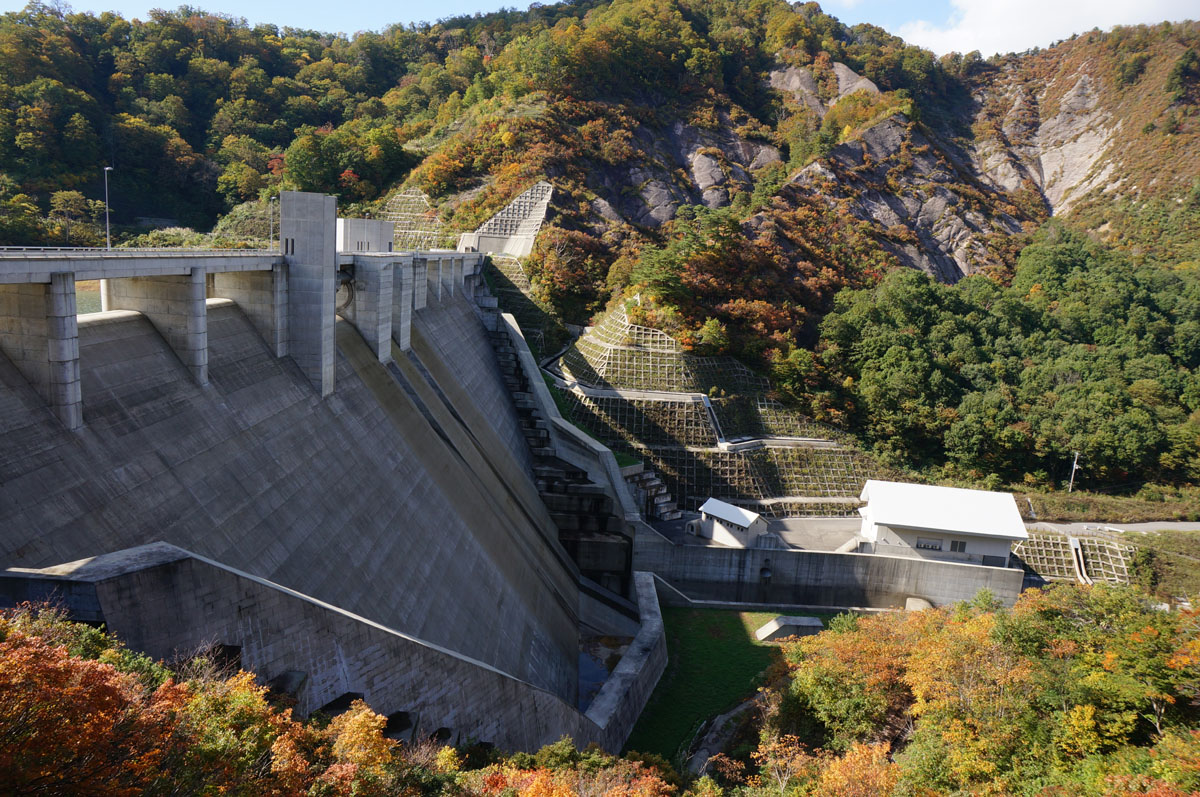 宿から見上げる100m級のロックフィルダムは見応えがあるかも。