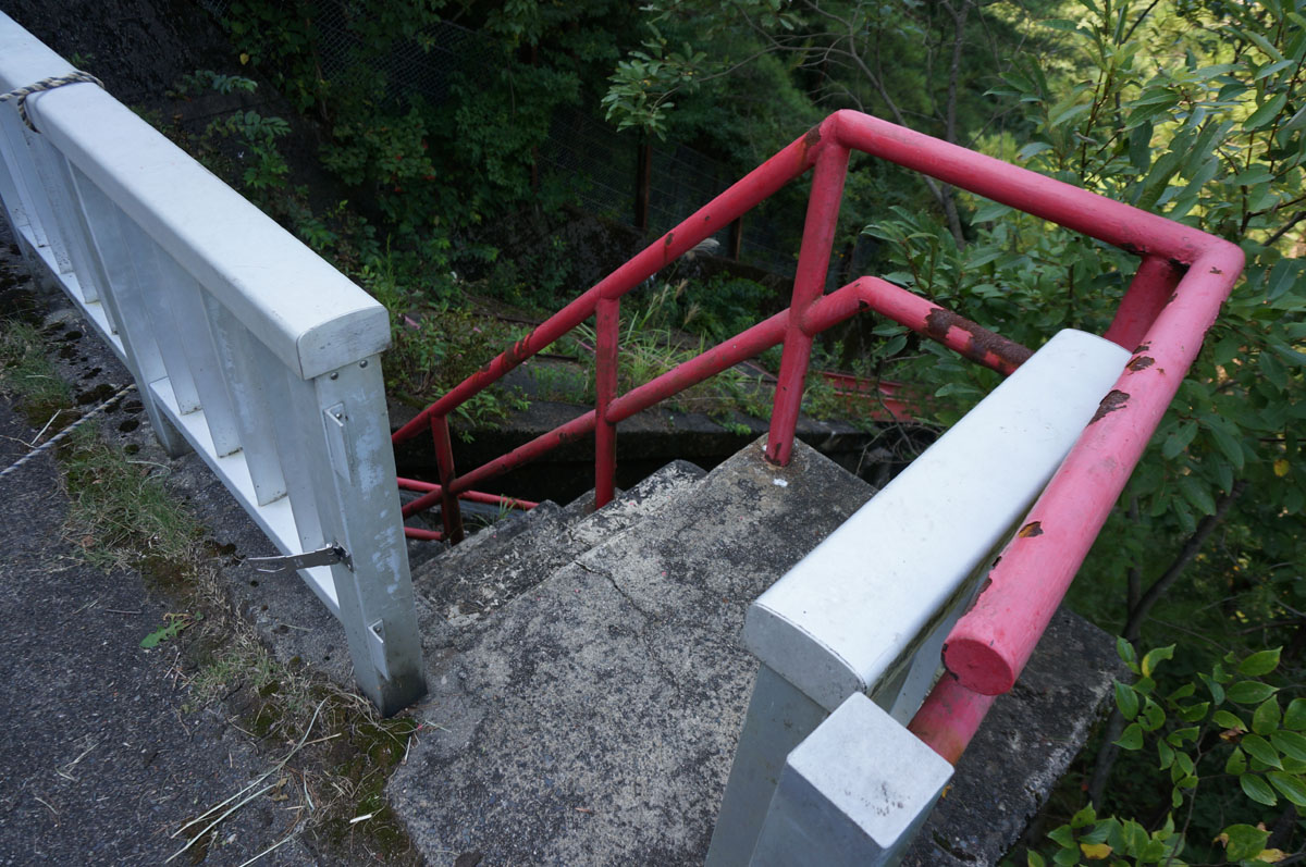なぜか開いています。見下ろすと結構急な山の斜面を階段がどこまでも…