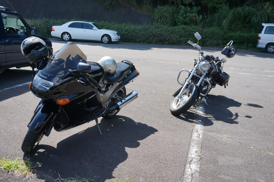 小さな橋を渡って、駐車スペースにバイクを停める。