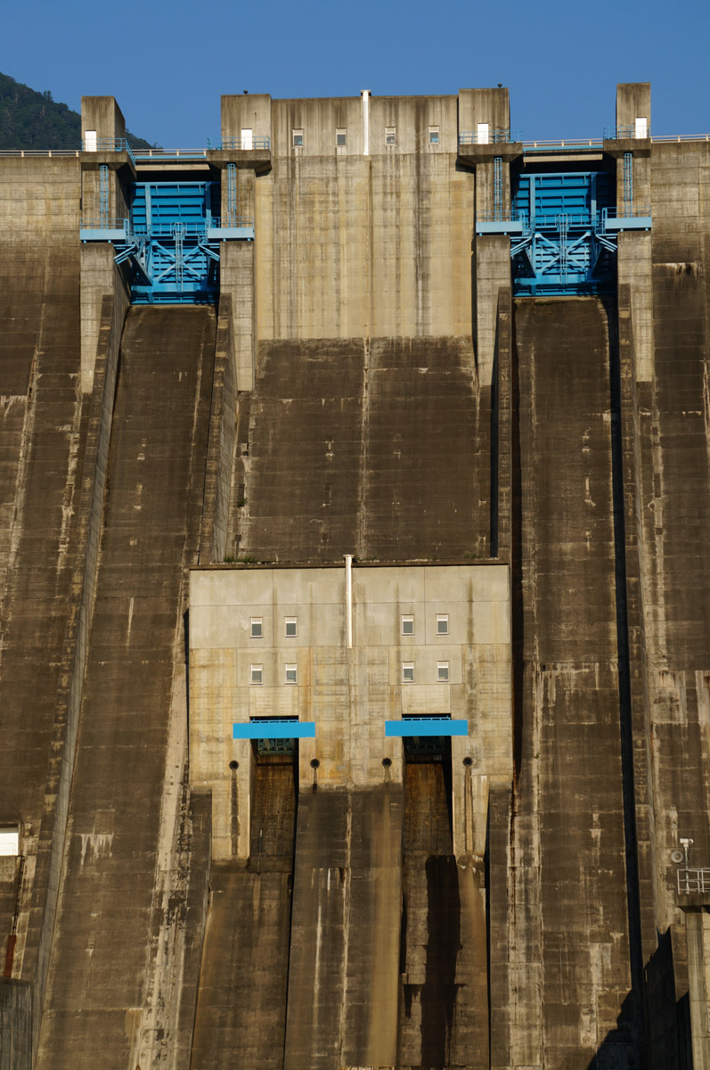 天端から下流を見下ろす。道路があるせいか、やっぱり高さ感が伝わらない。