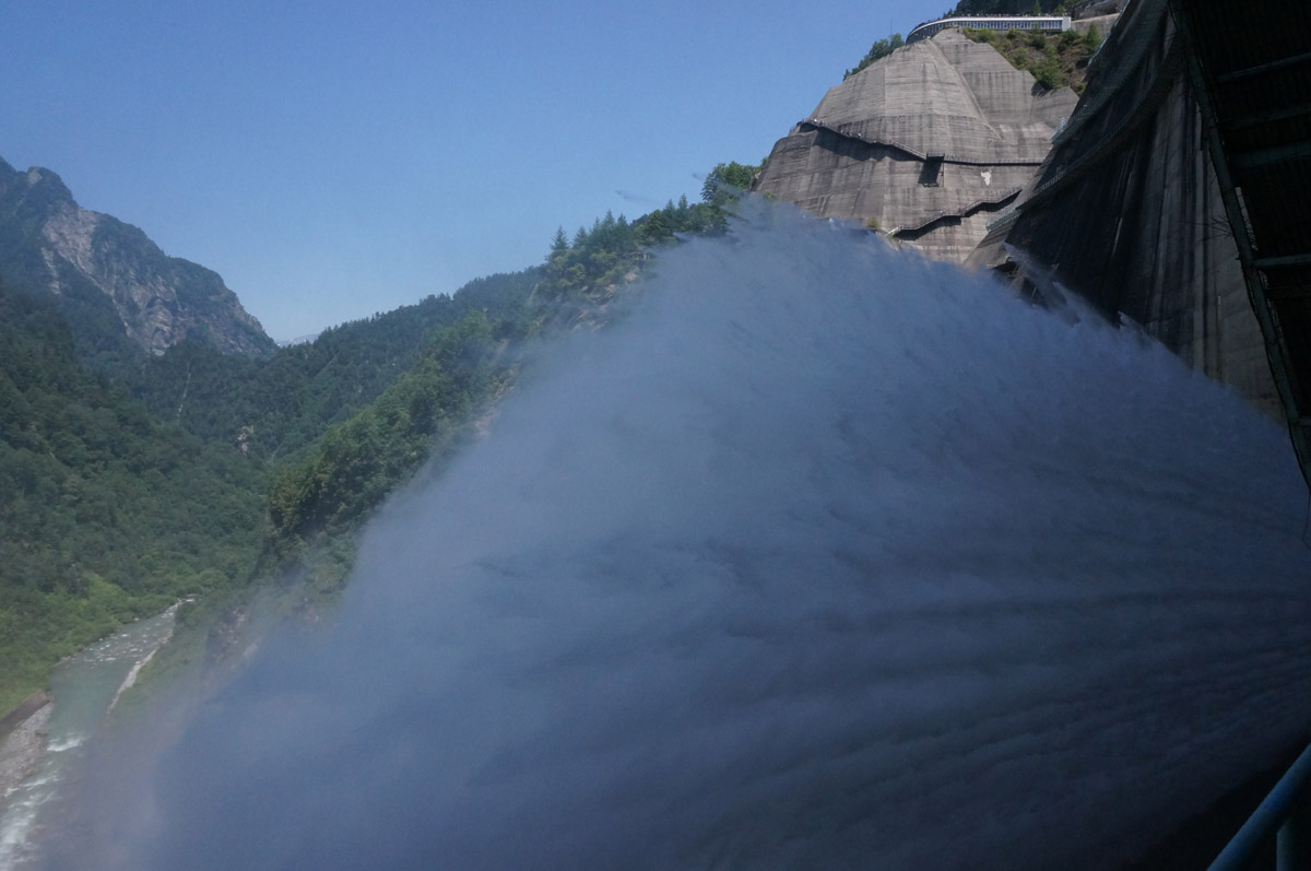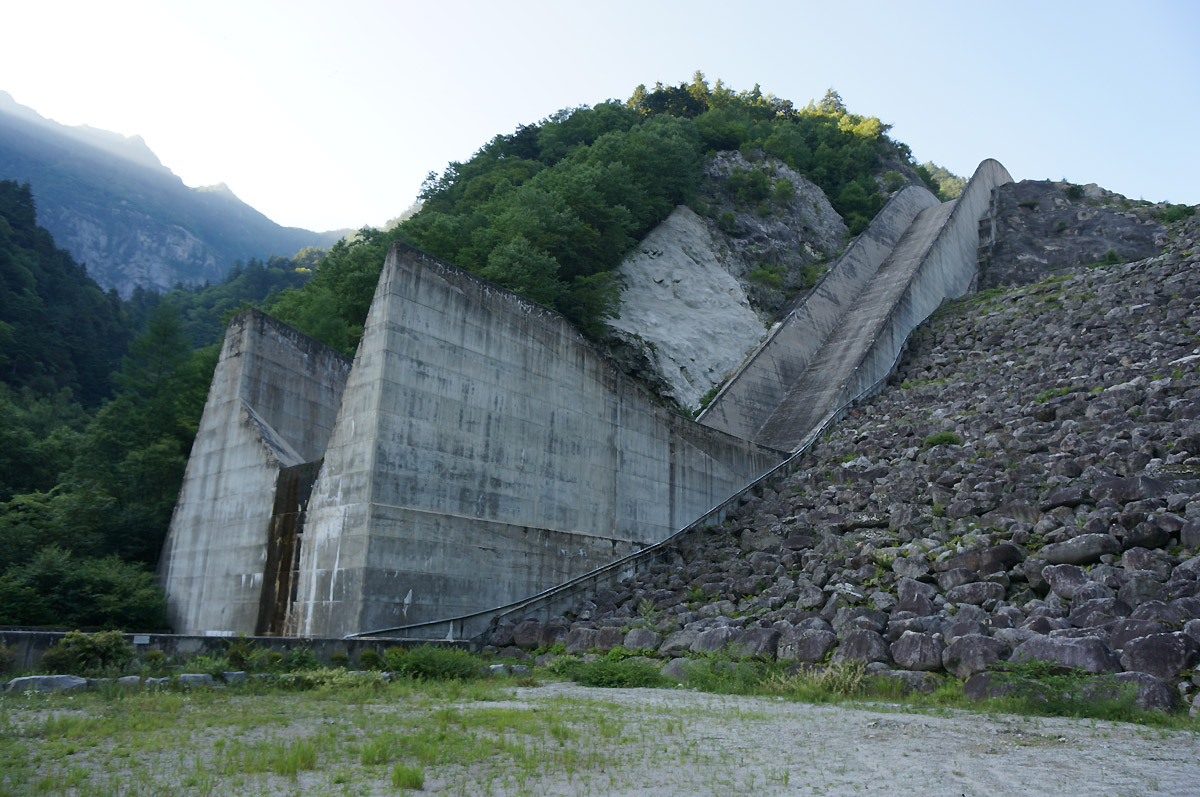 なんだか急勾配な気がする洪水吐。なんか七倉ダムと似てる。