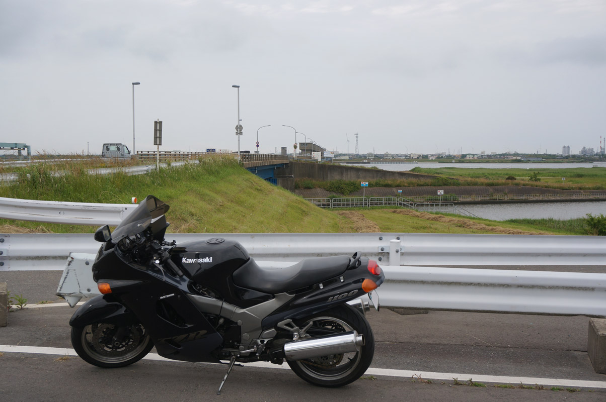 右岸から、置いてきぼりのZZR君を眺める。なんか寂しそうだ。
