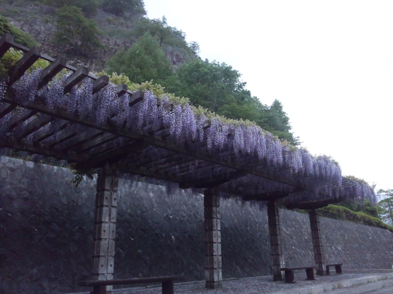 人工の滝とか藤棚とか、一段高くなった展望台とかがある。