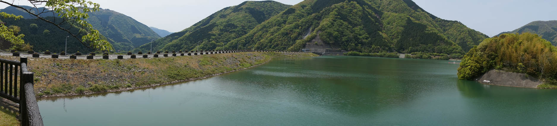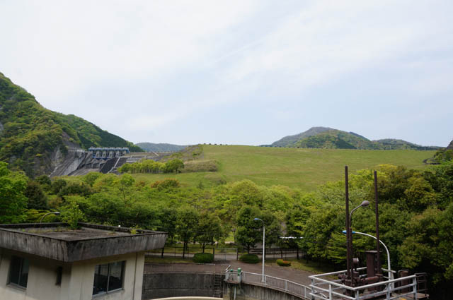 この緑の、日向ぼっこにゃ最適そうな小山がダムです。