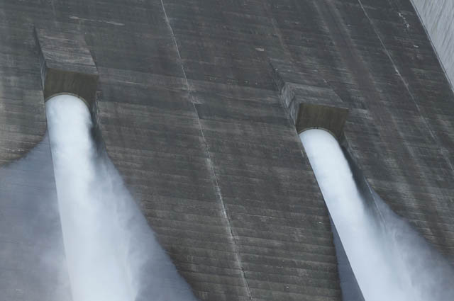 ダムですから、水を吐き出す部分がありまして、写真左手がそれです。